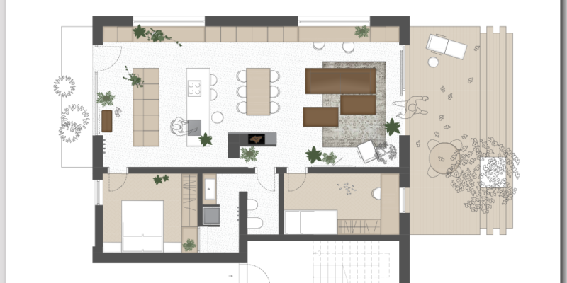 ABOUT THE PROJECT Square footage: 87.2 m² from a total of 182.5 m² Type of object: Single-family houseType of project: New buildingYear of design: 2022/23 The following is a visual representation of the upper floor of the single-family house discussed here. As mentioned, this floor features an entrance hall, a master bedroom, three children’s rooms, […]