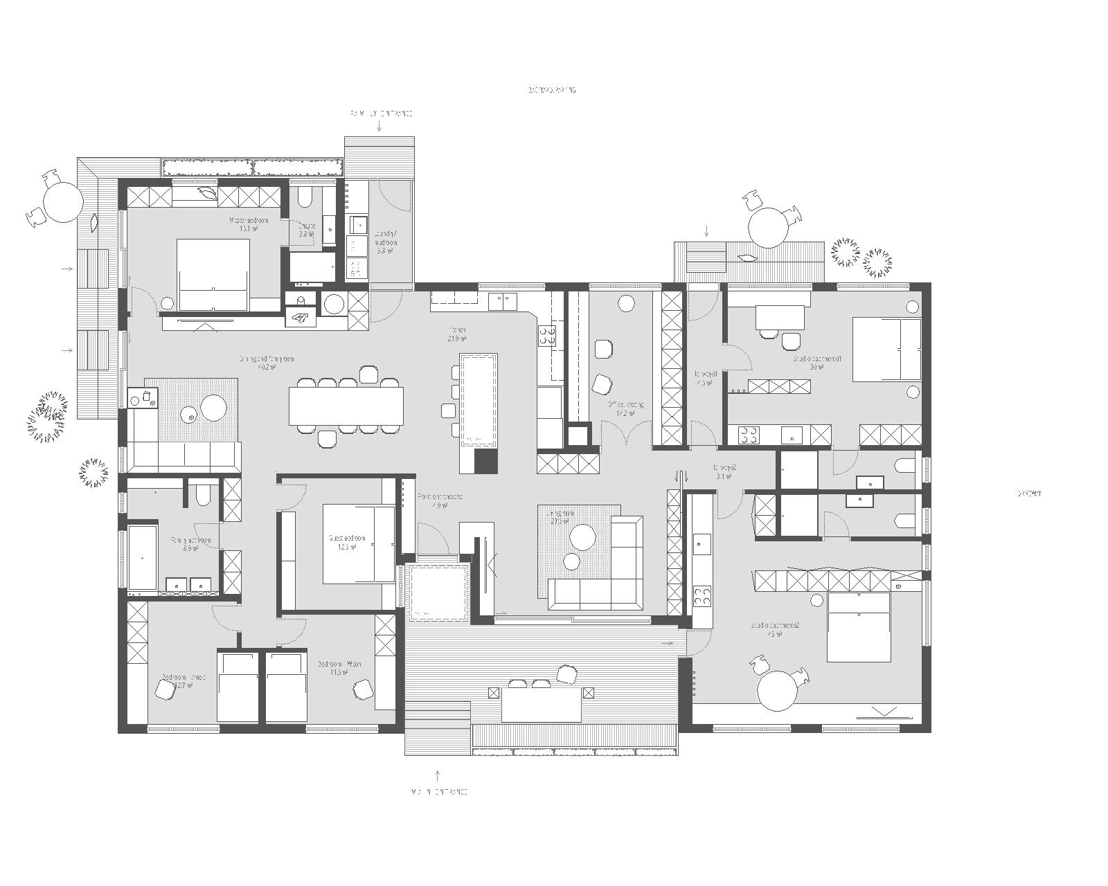 With such large square footage, it is first necessary to set the basic concept of the layout of the premises. Because if you imagine how many possible layouts are already in a room of 10 m², how many possible combinations are there at 270 m2, where it is also possible to demolish or add some wall, move a door or add a new window.