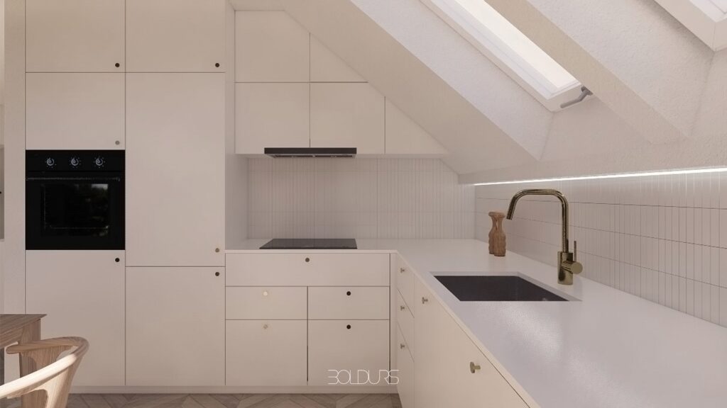 Designing a kitchen is a challenging task while designing a kitchen under a sloping ceiling is a truly challenging task.