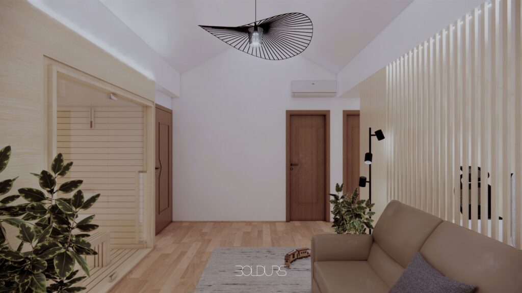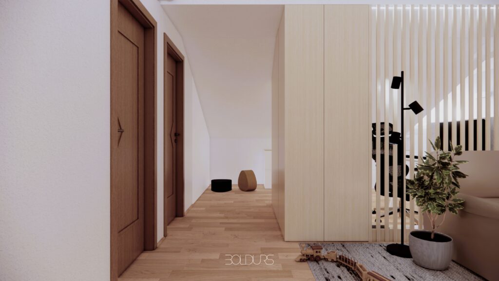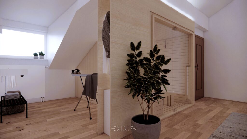 Our design ensures that there’s ample space for play, allowing children to explore and create while parents tackle chores or enjoy some well-deserved downtime. With strategic placement within the loft, parents can keep a watchful eye on their children from various vantage points, whether they’re working on computers, ironing, folding laundry, or unwinding in the sauna. It’s a harmonious blend of productivity and play, ensuring that every member of the family can thrive in this dynamic space.