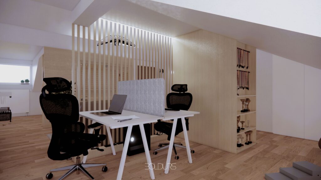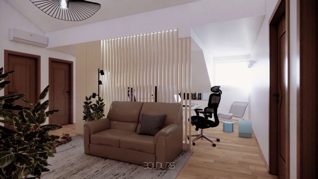 In this exciting project, we were tasked with furnishing a loft space within a single-family house. The goal was to seamlessly integrate various functions into one cohesive area, optimizing every inch of the room for efficiency and comfort.