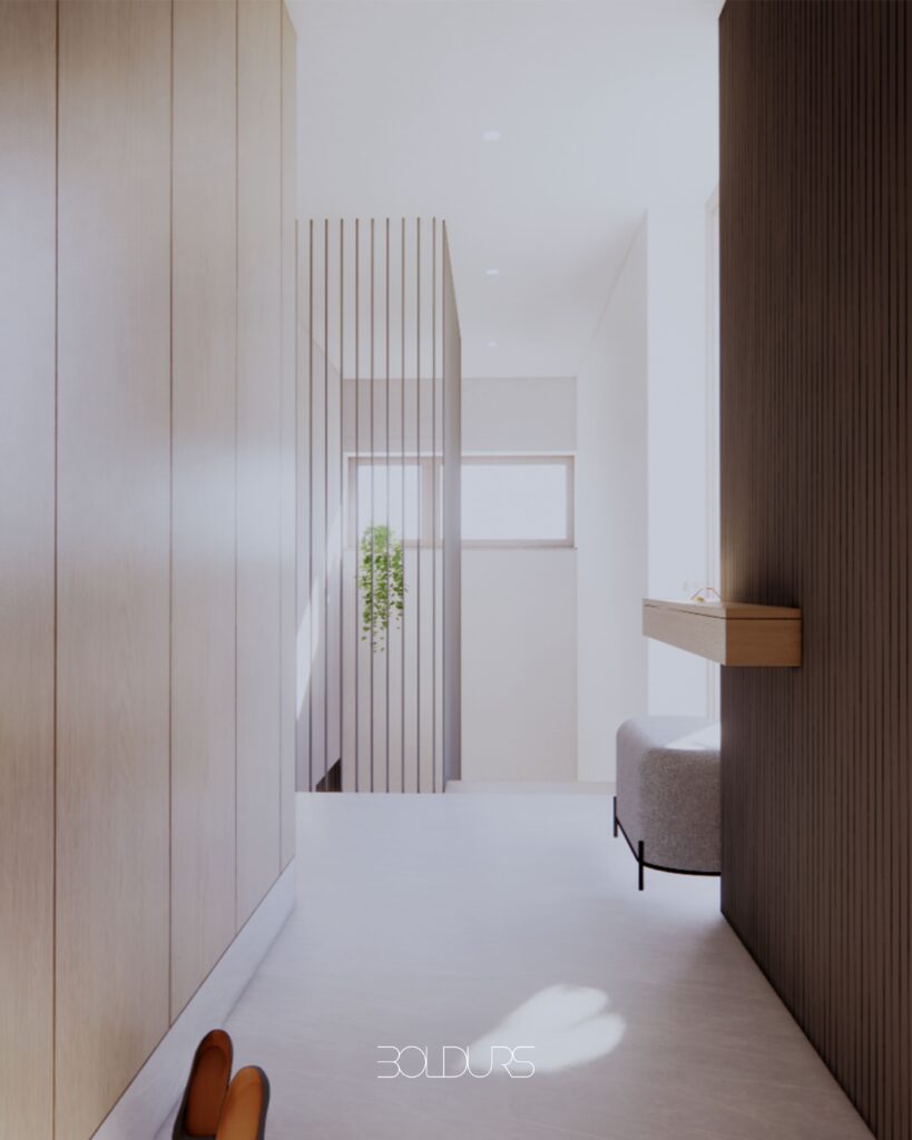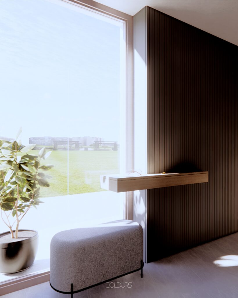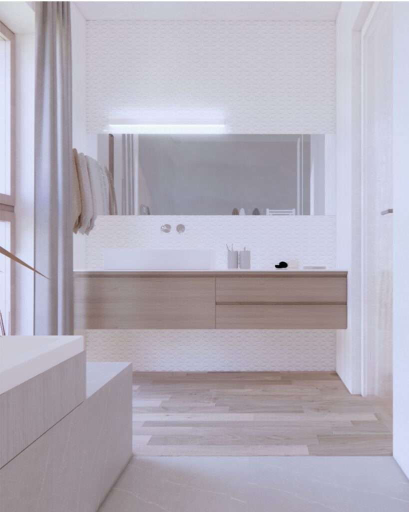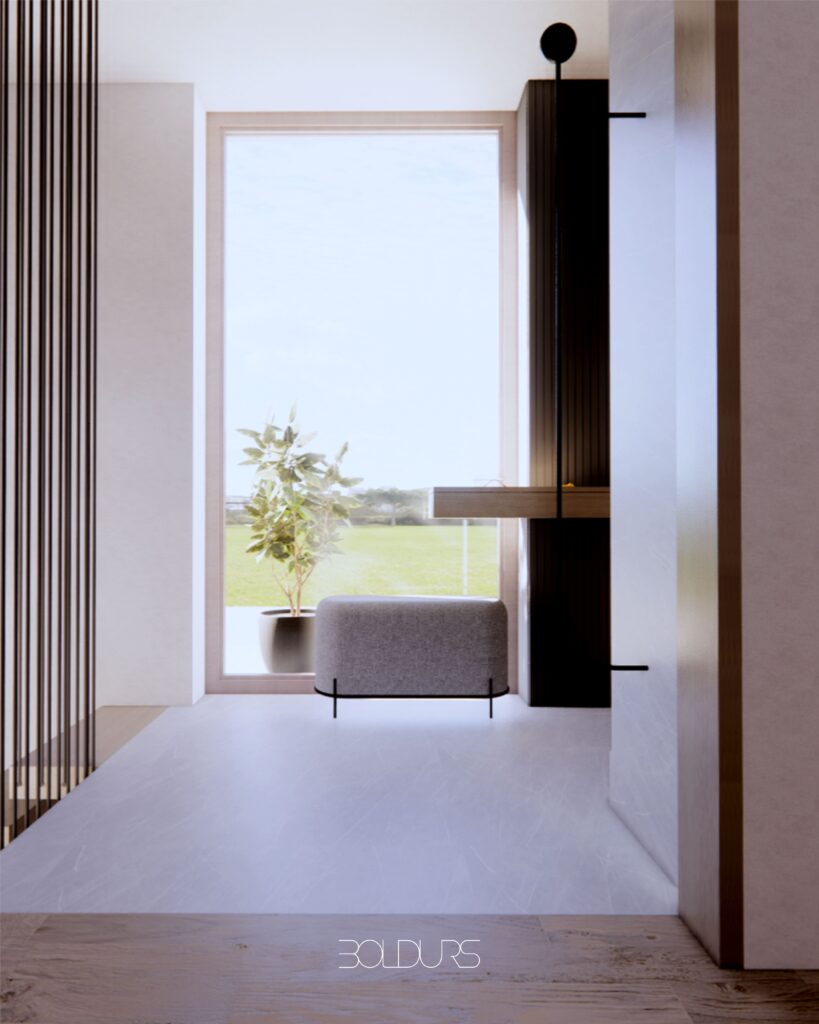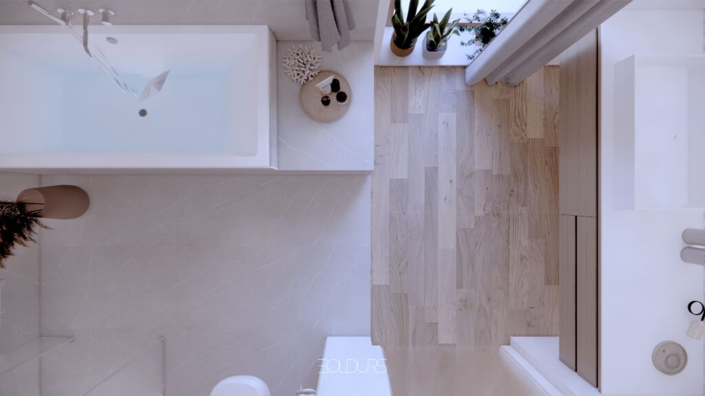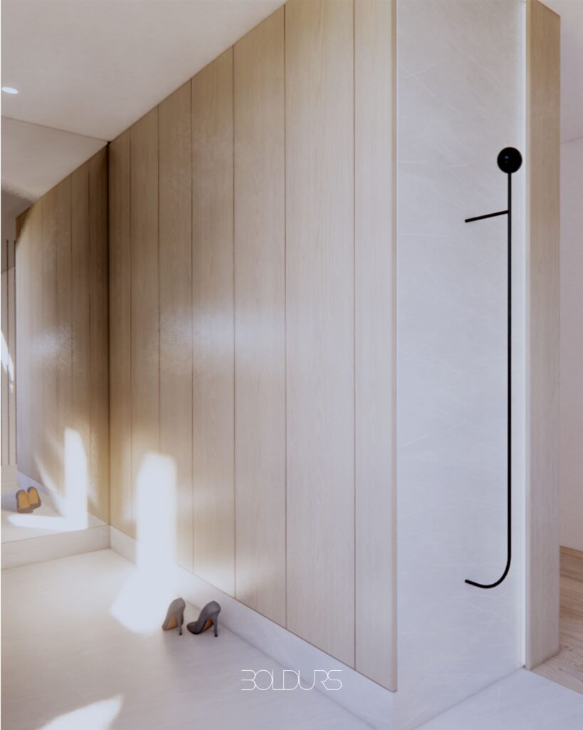 Although initially designed with functionality in mind, we felt compelled to reconsider and collaborate with the client to envision some modifications. Notably, we made significant changes to the layout of the fixtures in both the parental and children’s bathrooms. Additionally, we opted to forego the dressing room in the master bedroom. While walk-in wardrobes are undoubtedly attractive, this one seemed narrow. Therefore we decided on a classic arrangement of closets inside the bedroom, and even increased the storage capacity.